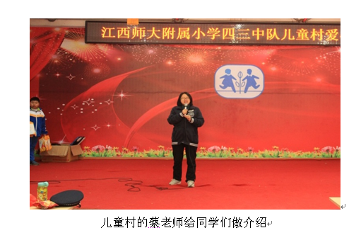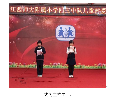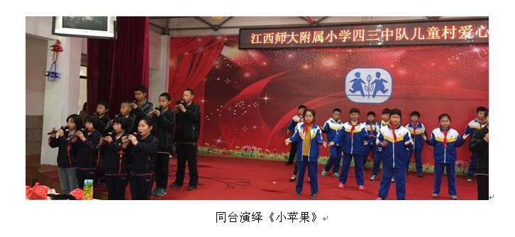四(3)班的同学跟儿童村的小朋友们举行了联欢活动。活动由双方小朋友共同主持,共同表演。双方在互相平等、相互尊重的基础上,相处融洽,玩的异常高兴。