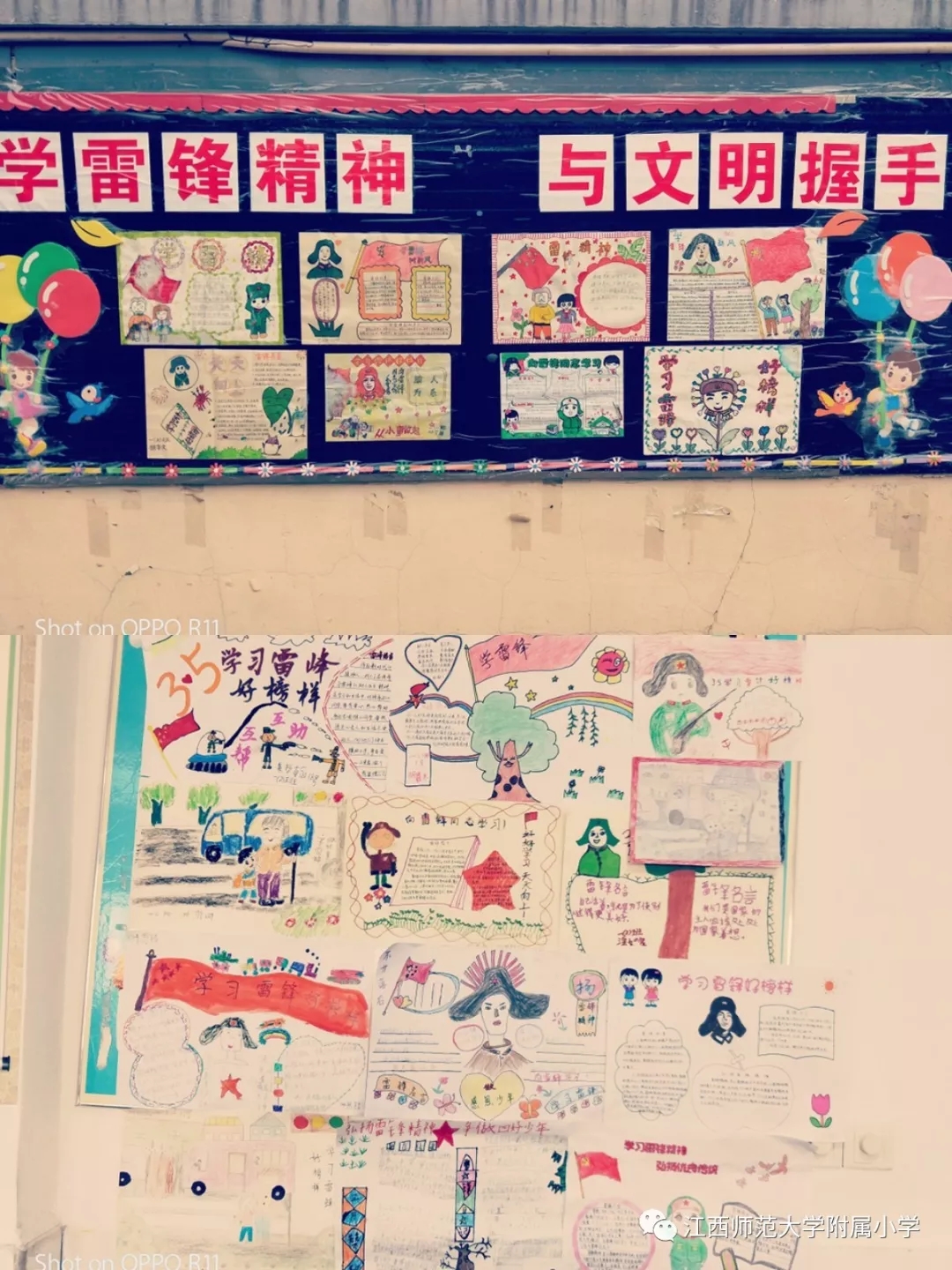 雷锋的一生非常短暂,但是他短暂的一生,给我们留下了许多财富,他的精神一直伴我们成长。附小每个中队都用艺术墙报的形式宣传雷锋精神,学生们积极参与,用手中画笔表现对雷锋精神的理解,加强了校园文化建设。