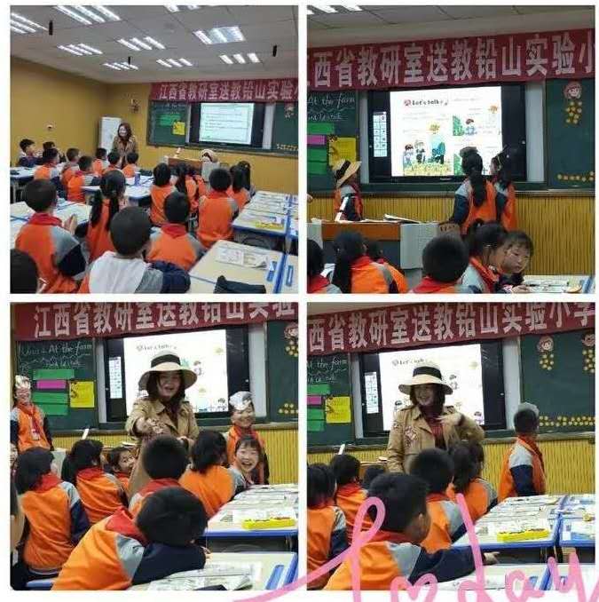 随着基础教育课程改革的不断深入,为了实现教育资源共享,加强城乡教师之间的交流与沟通,进一步提升两校教师的教育教学水平,澳门六合彩开奖网积极响应江西省教研室号召,专门组织两位青年教师于2019年3月20日来到了上饶市铅山县实验小学进行送课下乡活动,分别是李青老师的“At the farm”、张琴琴老师的“Seasons”。