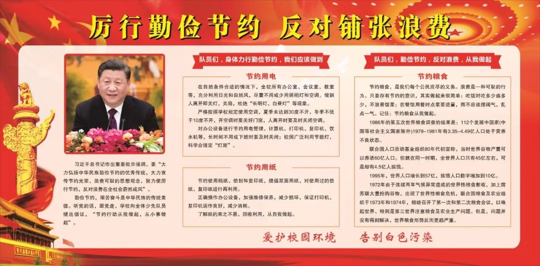 “一粥一饭,当思来处不易;半丝半缕,恒念物力维艰”,近期习近平总书记对制止浪费行为作出重要指示,要求切实培养节约习惯,在全社会营造浪费可耻、节约为荣的氛围。对此,澳门六合彩开奖网 少先队大队部积极贯彻落实习近平总书记指示,开展了“厉行节约你我同行”为主题的系列活动。