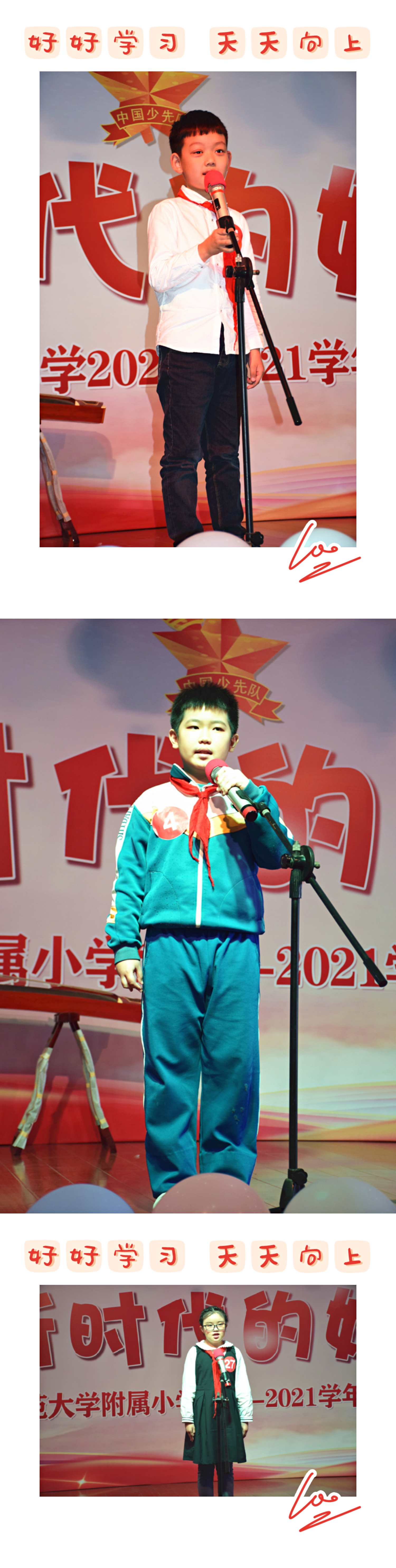 竞选活动中,候选人们自信满满、斗志昂扬。声情并茂的演讲,表达了自己对少先队工作的热情和决心,赢得了评委们及在场队员的阵阵掌声。