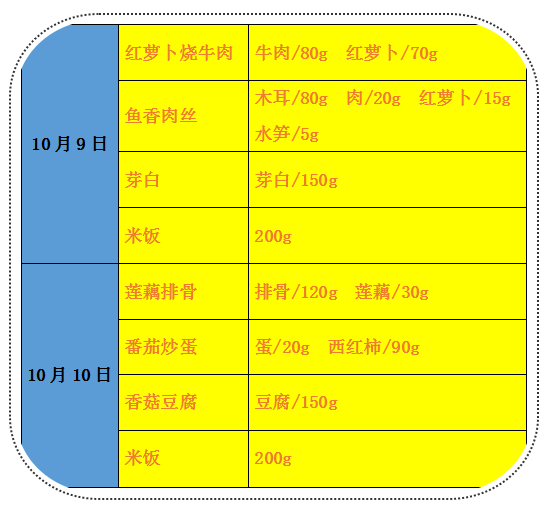 澳门六合彩开奖网 10月9日-10月16日食谱