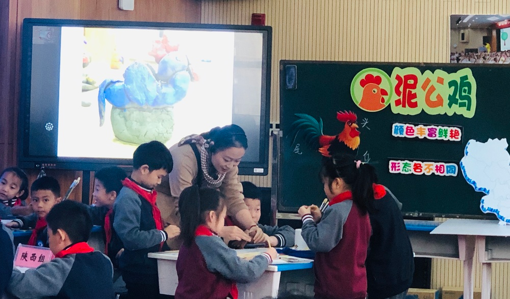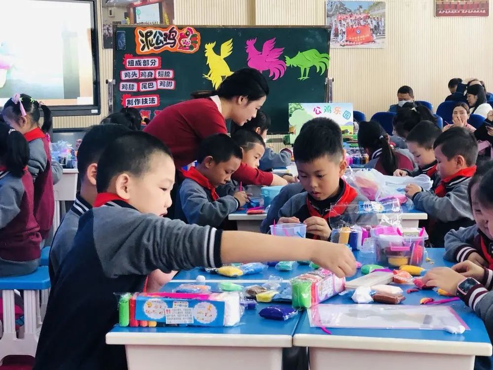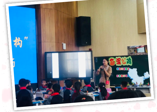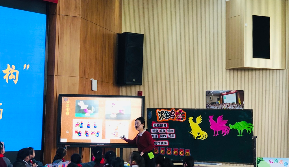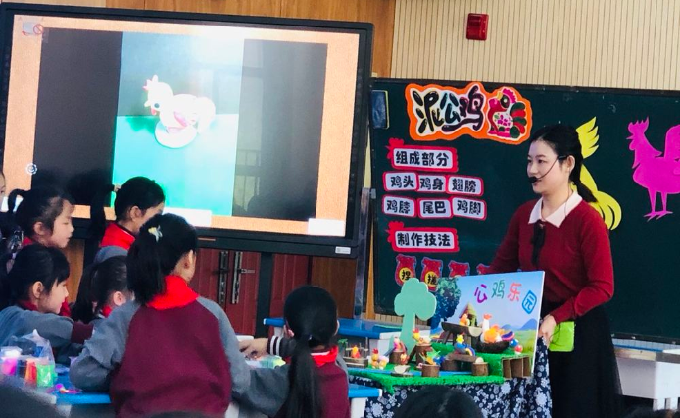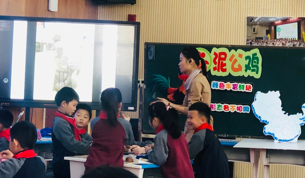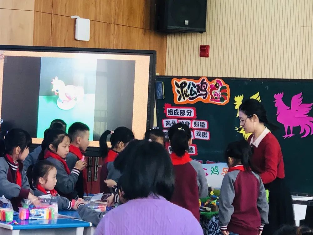 第二个环节:课堂展示环节。本次活动授课教师分别是南昌师范学院附属小学的邬芳婷老师与南昌大学附属小学的黄泽群老师。本节课是赣美版二年级上册第18课《泥公鸡》,两位教师的课堂教学各有千秋。泥土的可塑性吸引着学生玩在其中,乐在其中,学在其中。授课教师在本课的教学中传授了陶泥和泥塑的一些基本技法,让低年级孩子在玩泥过程中体验泥塑的特性,玩出创意,玩出精彩,两位教师语言充满童趣吸引学生,与学生互动亲切自然,每个环节循序渐进,让学生学会用对比观察的方法进行学习,课堂生动有趣,培养了学生的动手能力和创新能力。