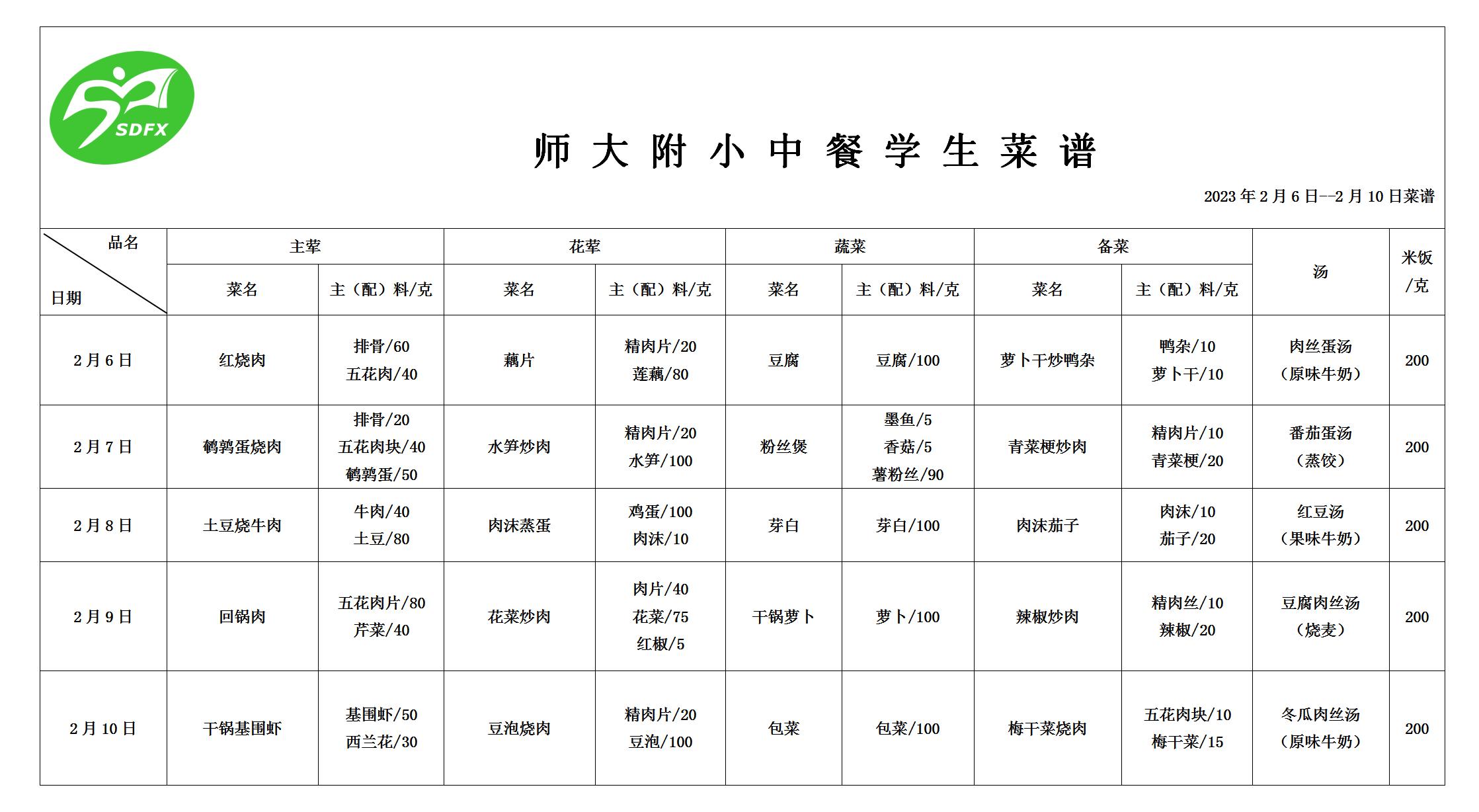 澳门六合彩开奖网 2023年2月6日-2月10日食谱