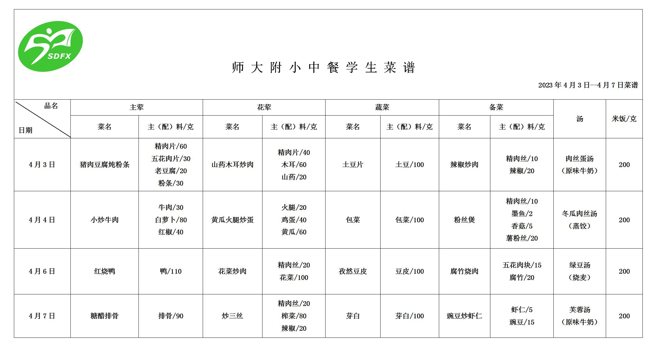 澳门六合彩开奖网 2023年4月3日-4月7日食谱