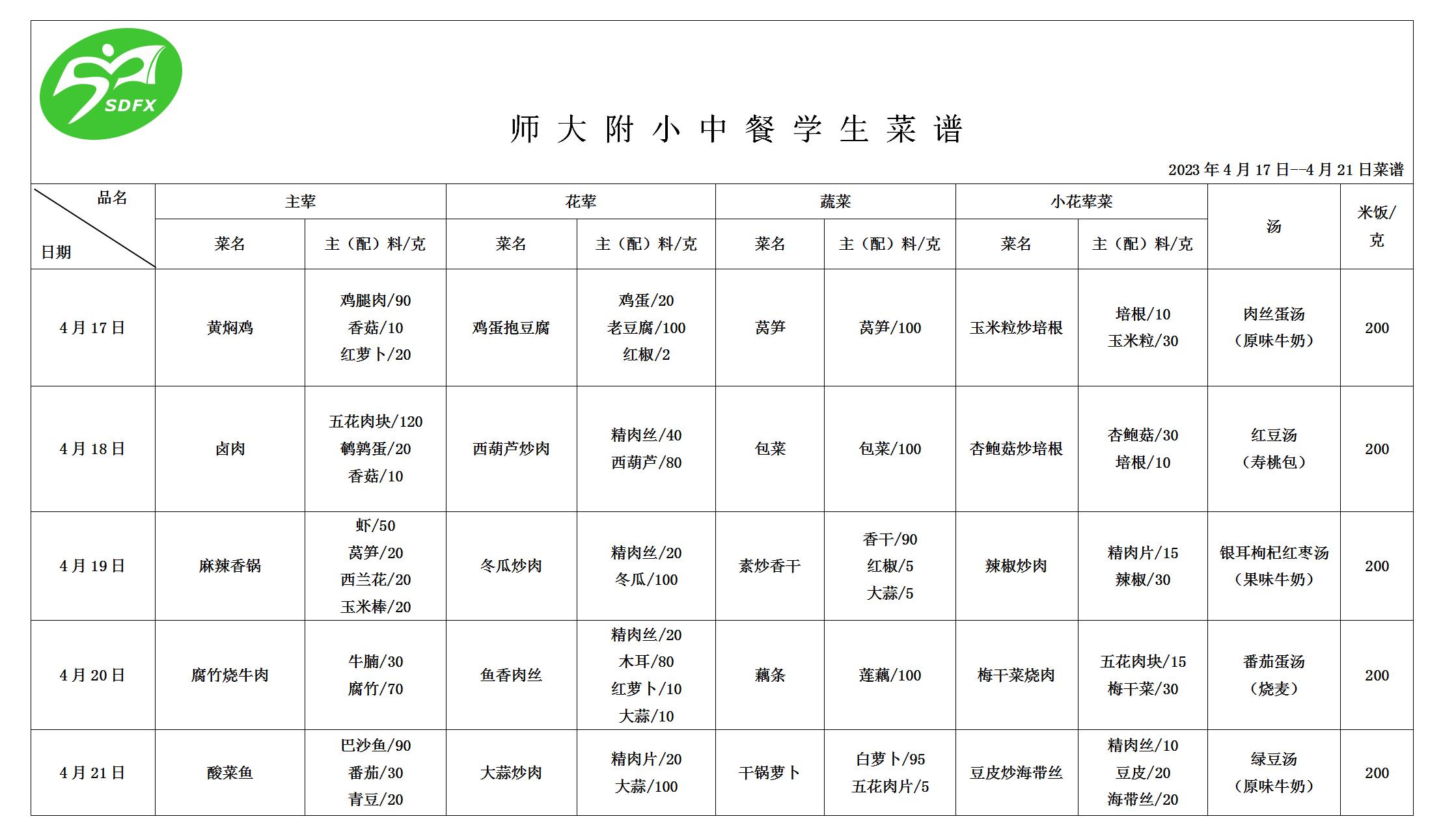 澳门六合彩开奖网 2023年4月17日-4月21日食谱