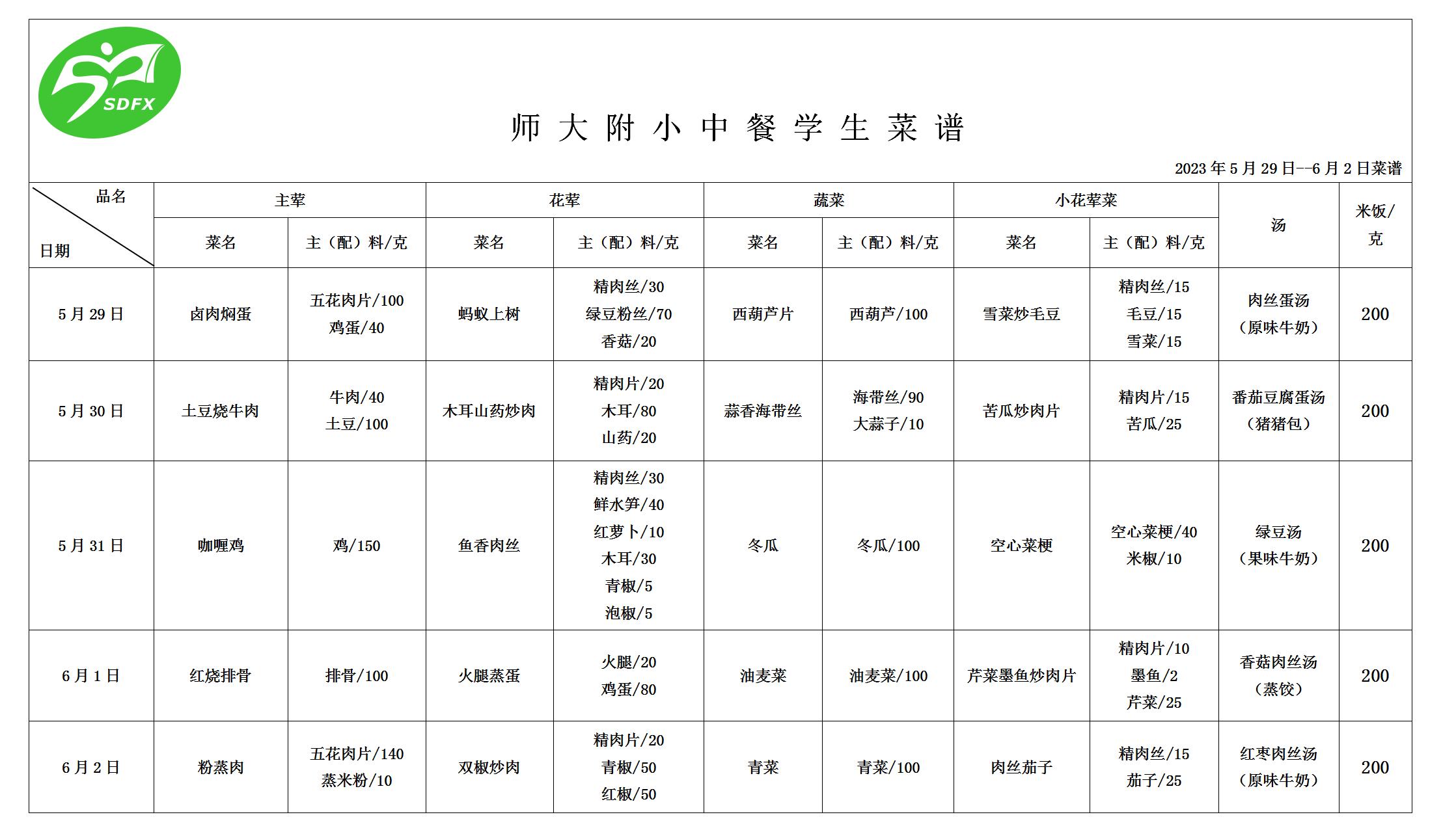 澳门六合彩开奖网 2023年5月29日-6月2日食谱