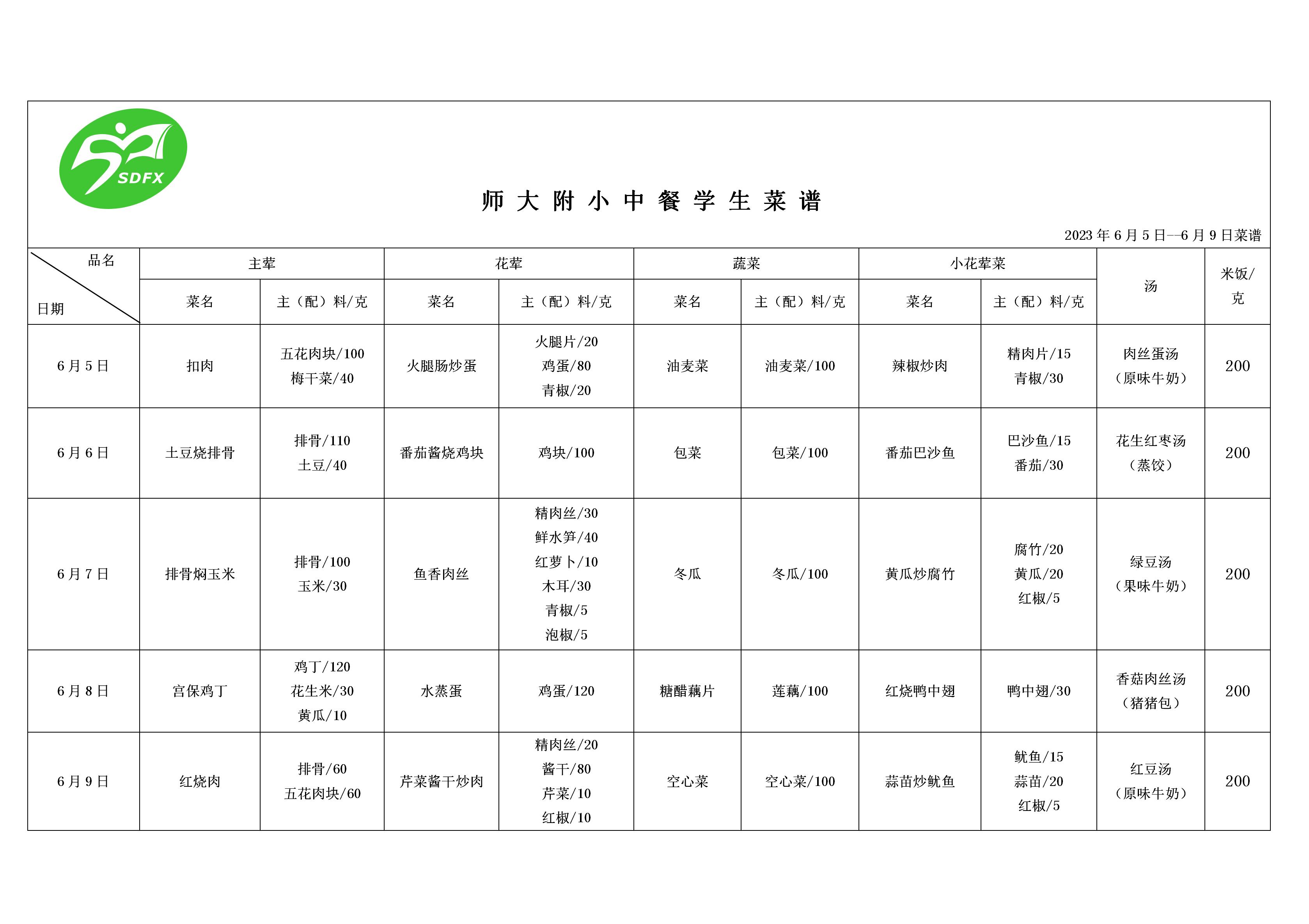 澳门六合彩开奖网 2023年6月5日—6月9日食谱