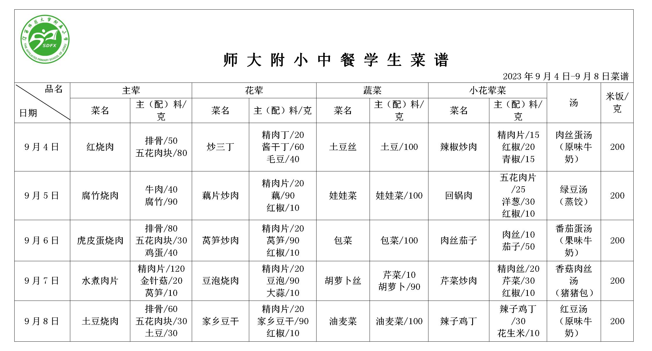 江西澳门六合彩开奖网 2023年9月4日-9月8日食谱