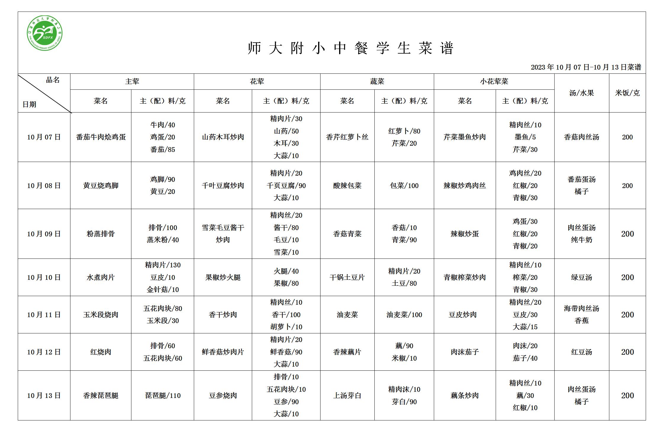 澳门六合彩开奖网 2023年10月7日-10月13日食谱