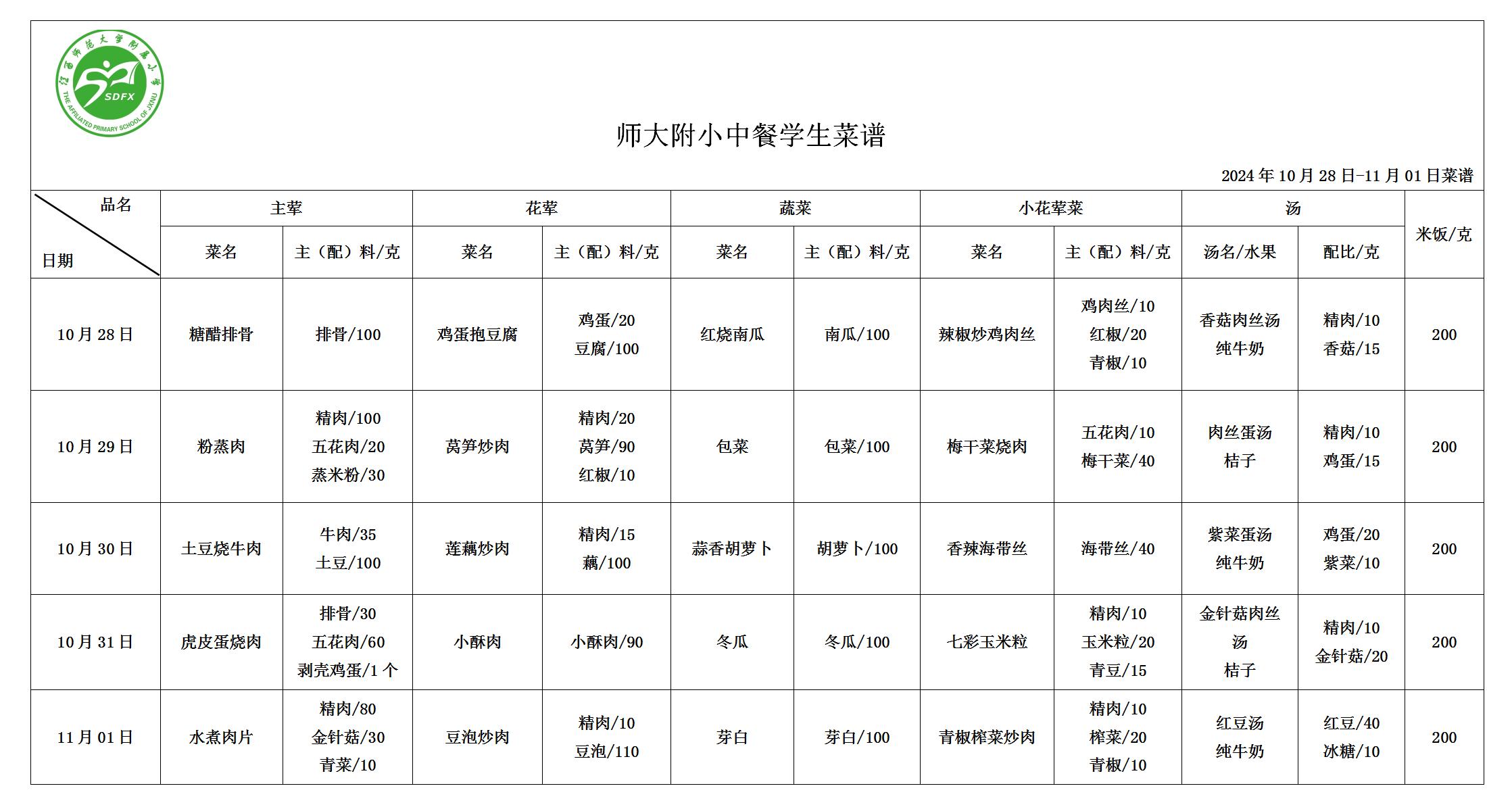 澳门六合彩开奖网 2024年10月28日-11月1日食谱